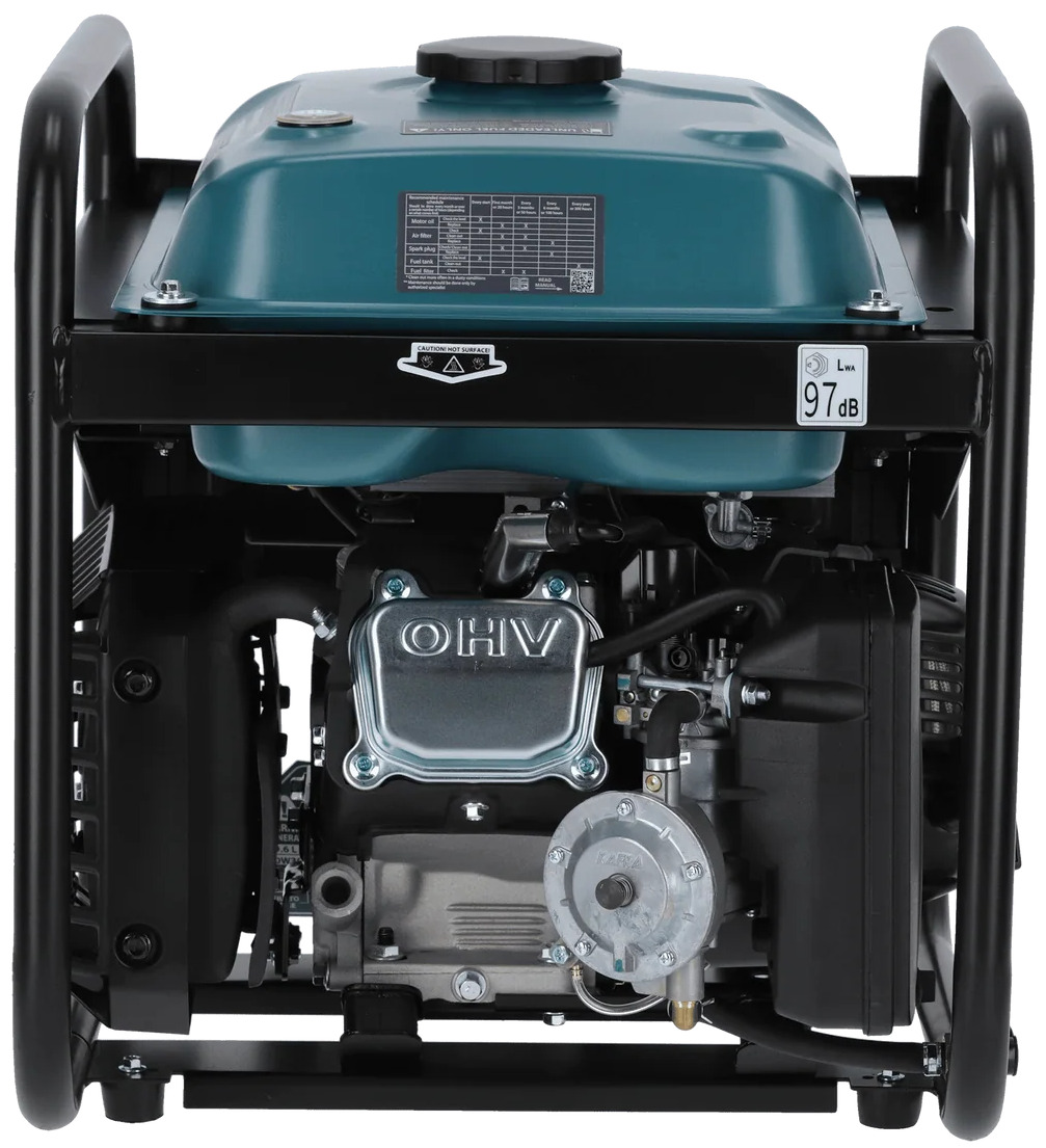 Работает от бензина мощностью 4.2 кВт или от газа мощностью 3.8 кВт, позволяя снижать эксплуатационные затраты и уменьшать вредные выбросы.