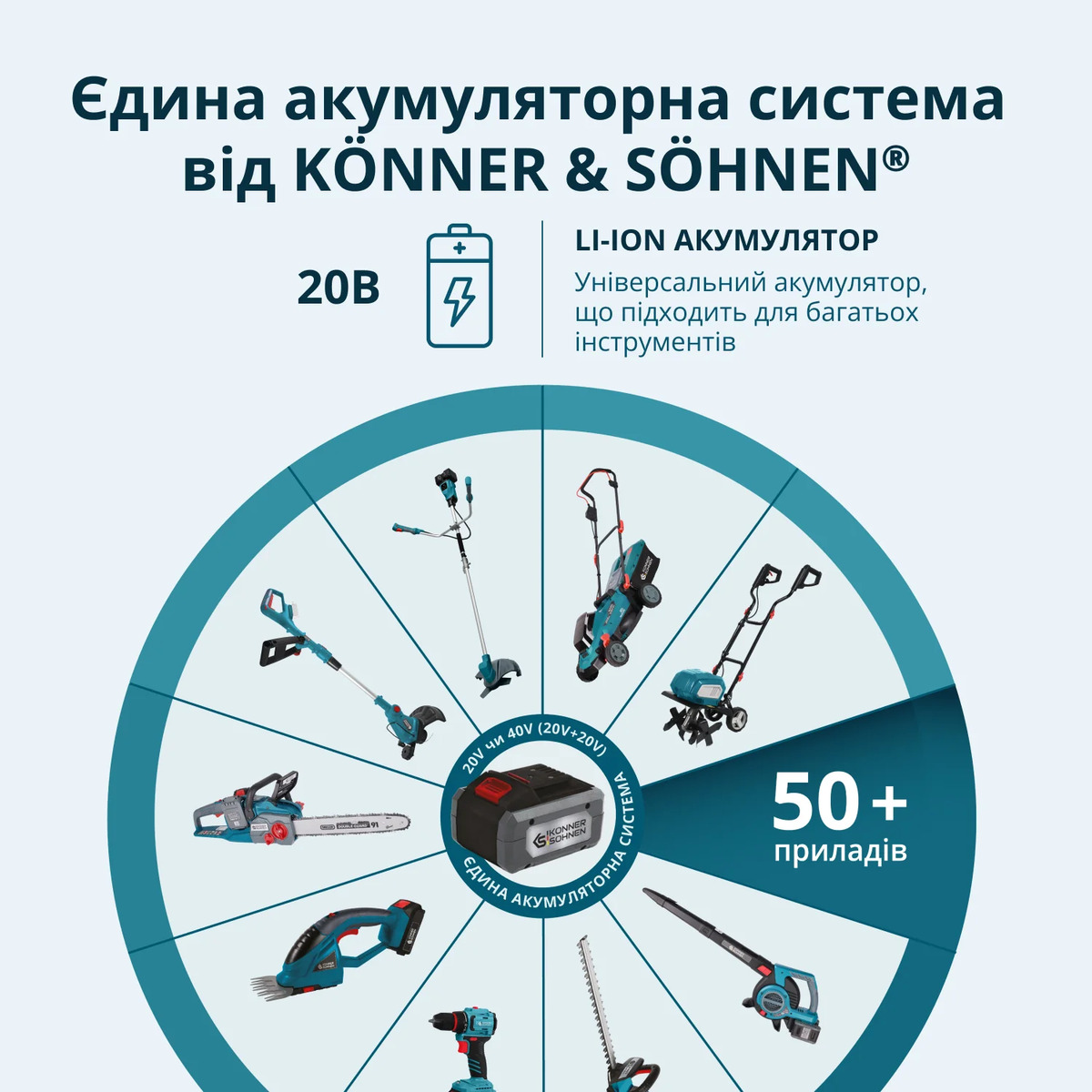 Інтернет-магазин KS-Ukraine пропонує можливість замовити акумуляторну ланцюгову пилку Konner&Sohnen KS MCS20V-8 з гарантією якості та швидкою доставкою. Тут легко підібрати оптимальну комплектацію, порівняти ціни та скористатися вигідною знижкою. Зручний сервіс та професійна консультація допоможуть швидко купити потрібну модель без зайвих витрат часу. Вибираючи KS-Ukraine, ви отримуєте надійного партнера для оснащення свого господарства найсучаснішим інструментом.